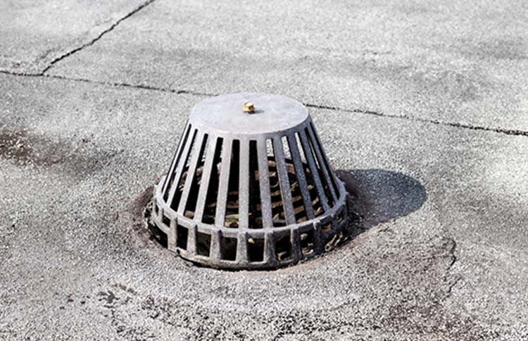 Drains have the advantage of being placed almost anywhere on the roof and they channel water away through a series of internal pipes. This makes them ideal for commercial roofs with large surface areas because they can be placed where two slopes meet or in rain troughs. The two common problems with roof drains is they can become clogged with debris (especially granules from BUR), and they have the potential to fail and become an entry point for water to cause damage inside the building.